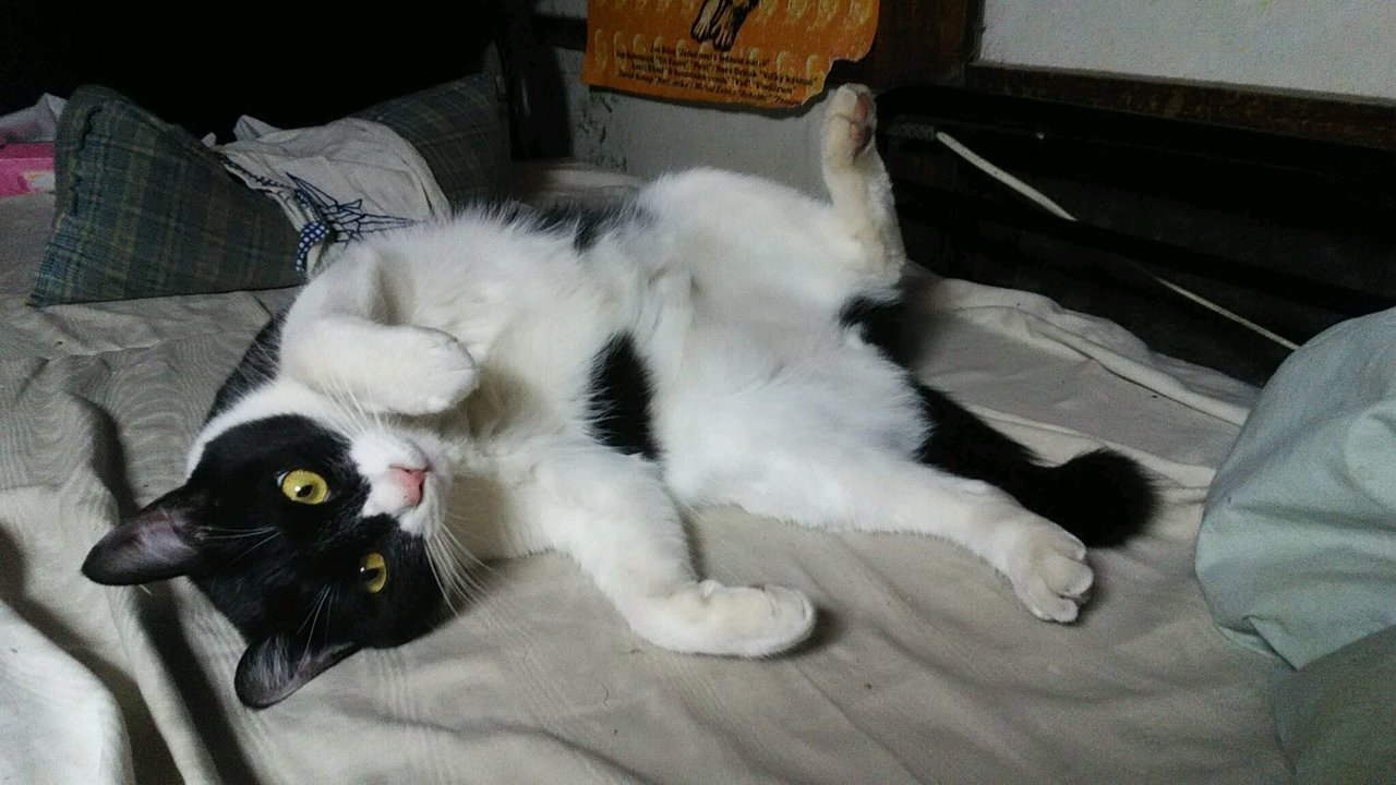 2013年7月に社員自宅付近(練馬区)にて保護。鼻がつまり、毛つやの悪い外猫が自宅周囲に現れるようになり数ヶ月後に保護。エイズ検査陽性。鼻づまりは治らずだが、毛並みはよくなり食欲旺盛。人間が大好きな甘えん坊なので、元飼い猫であると思われる。おっとりしたとってもよい子。我が家の癒やし系担当。